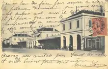 Le bâtiment principal, établi sur un étage, comprenait une horloge. À l'étage, « le buffet-restaurant se prolongeait par une terrasse donnant sur la cour animée par les calèches au service des voyageurs »[5]. Le rez-de-chaussée comprenait cinq grandes arcades donnant sur la salle « des pas-perdus », en abritant tous les services d'une gare importante. Il a été remplacé dans les années 1930[5], l'ancien bâtiment « ne [correspondant] plus aux exigences du trafic et à l'accroissement régulier du nombre de voyageurs[11] ».