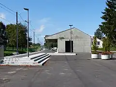 Il y a un petit parc à vélos qui est abrité dans le bâtiment.