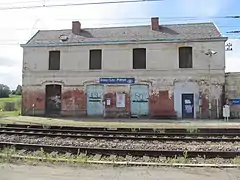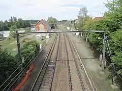 Voies, quais, abri, passage à niveau et l'ancien bâtiment à l'abandon. | |