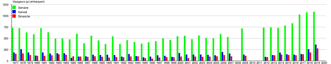 | Tabel: Nombre de voyageurs qui embarquent à la gare de Linkebeek | |||