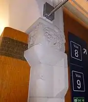 - À la suite de l'électrification de la gare dans les années 1950, cette frise est recouverte en majorité dans les tunnels d'accès aux quais (des fragments réapparaissent par endroits comme ici avec l'escalier d'accès aux voies). Or, on retrouve cette même frise en totalité dans la section du passage Jürgen-Kröger, rouverte en 2012.