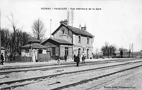 - Une conséquence inattendue de l’existence de cette station fut la confusion qui régna longtemps quant à l’existence d’une supposée commune de Perray-Vaucluse. Ce nom est d’ailleurs gravé sur les côtés latéraux du bâtiment voyageurs[5]. Des cartes postales portèrent cette indication, pendant près de 50 ans, alors qu’il s’agissait du nom de l'asile[3].
