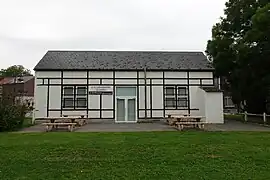 Site de la gare en 2023, le bâtiment des voyageurs se trouvait à l'emplacement des arbres sur la gauche. | |