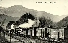 Le projet de la gare de Vif est envisagé de pair avec le projet d'une ligne ferroviaire passant à travers les alpes, de Grenoble jusqu'à Veynes, en 1869 par la Compagnie des chemins de fer de Paris à Lyon et à la Méditerranée (PLM)[3]. Le projet est approuvé par de nombreux cimentiers de la vallée de la Gresse (Vicat, Guingat, Berthelot…) qui voient là le moyen de transporter leur ciment plus rapidement sur Grenoble[3].