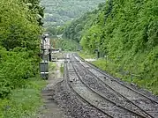 Elle comporte un évitement[2], qui permet le croisement des trains sur la voie unique, et de plusieurs voies de service.