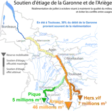- le canal de Saint-Martory avec la prise d'eau à Saint-Martory, prélève 10 m3/s au fleuve[22] ;