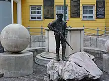 Gars de Pest, statue de Lajos Győrfi (1996), sur le Corvin-köz.