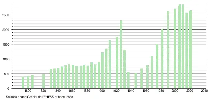 Les paramètres climatiques de la commune ont été estimés pour le milieu du siècle (2041-2070) selon différents scénarios d'émission de gaz à effet de serre à partir des nouvelles projections climatiques de référence DRIAS-2020[23]. Ils sont consultables sur un site dédié publié par Météo-France en novembre 2022[24].