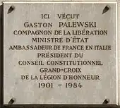 Gaston Palewski, né le à Paris 9e (Île-de-France) et mort le au château du Marais au Val-Saint-Germain (Essonne), est un diplomate et homme politique français, issu d'une famille d'origine polonaise.