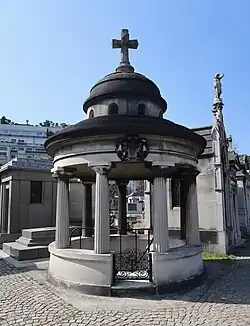 Il repose au cimetière de Passy dans la crypte funéraire de la famille de sa femme.
