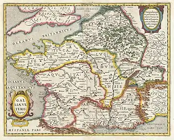 La Gaule (en latin : Gallia) était une région historique de l'Europe de l'Ouest, peuplée majoritairement lors de la conquête romaine, par les Celtes (appelés Gaulois par les Romains), les Belges, les Aquitains[2], les Ligures et les Ibères, correspondant approximativement actuellement à la France, le Luxembourg, la Belgique, la majeure partie de la Suisse, le nord de l'Italie, ainsi que des régions des Pays-Bas et d'Allemagne situées sur la rive ouest du Rhin. Les frontières exactes de la Gaule, signalées par César (le Rhin et une partie du Rhône à l'est, les Alpes au sud, les Pyrénées au sud-ouest, l'Atlantique à l'ouest), ont varié au fil du temps en raison des conquêtes, des migrations, des changements politiques et de la conception des Gaulois d'un espace qui leur était commun[3],[4].