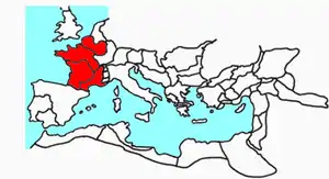 Les noms « Gaule » et « Gaulois » restèrent quant à eux en usage pour désigner les provinces romaines s'étendant sur le reste de ces territoires (France, Belgique et plateau suisse actuels) et leurs habitants de culture romanisée (que l'archéologie et l'historiographie française désignent sous le néologisme de Gallo-Romains).