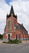 - L'église Saint-Vaast. Sous le porche de l'église à l'intérieur se dresse une grande croix en bois sur laquelle sont gravés les noms de 57 officiers, sous-officiers et soldats britanniques morts en pour libérer la commune[44]. Elle héberge un élément patrimonial classé au titre d'objet des monuments historiques[45].