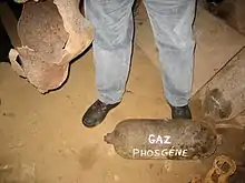 Les défauts du chlore sont surmontés avec l'introduction du phosgène, inventé par un groupe de Français menés par Victor Grignard et utilisé pour la première fois en 1915[21]. Incolore et possédant une odeur semblable au « foin moisi », il est difficilement décelable ce qui fait de lui une arme plus efficace. Parfois utilisé seul, il est plus souvent associé à un volume égal de chlore qui aide le phosgène plus dense à se répandre[22]. Les Alliés appelèrent cette combinaison « Étoile blanche » d'après le marquage peint sur les fûts contenant le mélange[23].