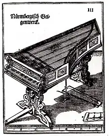 Le Geigenwerk est une invention datant de 1575, de l'organiste Hans Christoph Heyden (de) de Nuremberg. En 1576 un premier instrument fut livré à la chapelle de la cour de Munich.