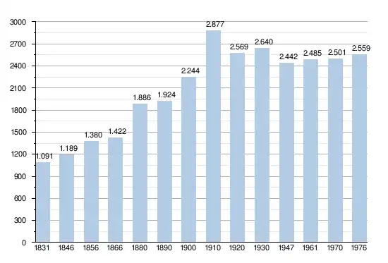 - Sources : INS, Rem. : 1831 jusqu'en 1970 = recensements, 1976 = nombre d'habitants au 31 décembre.