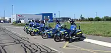 - les unités motorisées, gendarmes motocyclistes chargés de la surveillance du réseau routier ; ils ne dépendent pas de la compagnie mais de l'escadron départemental de sécurité routière (EDSR dont la compétence s'étend sur l'ensemble du département d'implantation). On y trouve les Brigades Motorisées et les pelotons motorisés dont dépendent les équipes rapides d'intervention équipées de la Renault Mégane RS ainsi que d'Alpine A110 depuis 2021[22], en fonction des EDSR. Ces unités composées de motocyclistes et de militaires à pied outre leur mission essentielle de police de la route (constatations des accidents pour les pelotons autoroute, contrôles de vitesse, coordination des transports, lutte contre l'immigration illégale, travail dissimulé), renforcent ponctuellement les unités territoriales dans la recherche de malfaiteurs, etc. ;