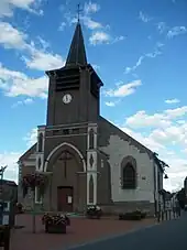 Le clocher qui se trouve en façade est un exemple du gothique troubadour représentatif de l'époque de la Restauration.
