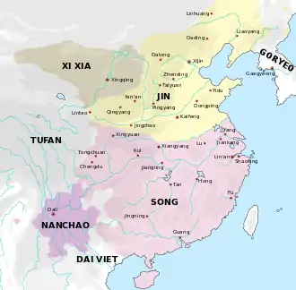 Entre 1203 et 1209, Gengis Khan lance ses trois premières campagnes contre la Dynastie des Xia occidentaux, après avoir envoyé son fils Djötchi soumettre une tribu du nord[10]. Ces campagnes aboutissent à un accord de paix par lequel l'empereur vaincu se soumet aux Mongols et promet d'associer ses troupes à celles de Gengis Khan en cas de besoin[9].