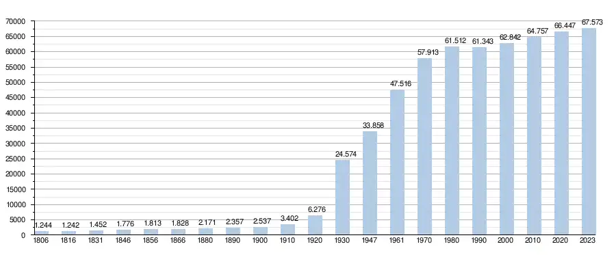 - Source : DGS - Remarque: 1806 jusqu'à 1970=recensement; depuis 1971=nombre d'habitants chaque 1er janvier[6]