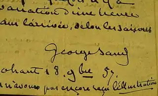 - Jean-Hippolyte Michon (l'art de juger les hommes par leur écriture), « 2e partie : diagnostic d'une écriture donné par George Sand », Le Journal des autographes, Paris, Imprimerie Grandremy, no 8, , p. 2 à 4 (lire en ligne).