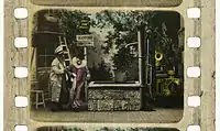 Le contenu féerique ou fantastique d'une grande partie des films de Georges Méliès a contribué à donner à la couleur une place importante dans l'œuvre du maître. Bien que partisan des décors en camaïeux de noir et de blanc, qu'il exécute lui-même en exploitant ses talents de dessinateur, Georges Méliès conçoit ses films autour du procédé de colorisation qui naît très tôt au cinéma, notamment en avec les films produits par Thomas Edison, Danse du papillon et Danse serpentine[16]. Sa mise en scène prévoit ces effets en amont du tournage[17]. Le procédé est long et minutieux, il se fait directement sur la pellicule noir et blanc, sur des copies du négatif original, d'abord photogramme par photogramme à raison de 16 à 18 images par seconde[18]. Pour satisfaire à la demande toujours grandissante d'achat de copies colorisées, le procédé est ensuite industrialisé et mécanisé par le biais de pochoirs que l'on utilise déjà en photographie (cartes postales, réclamant cependant un nombre important de « petites mains »). C'est dans un atelier extérieur au studio de Méliès que sont colorisés les films de sa société Star Film, sous la direction de Mme Thuillier[19]. Dans une entrevue donnée à François Mazeline pour le journal L’ami du peuple (du soir), Élisabeth Thuillier (en) parle de son travail : « J’ai colorié tous les films de M. Méliès. Ce coloriage était entièrement fait à la main. J’occupais deux cent vingt ouvrières dans mon atelier. Je passais mes nuits à sélectionner et échantillonner les couleurs. Pendant le jour, les ouvrières posaient la couleur, suivant mes instructions. Chaque ouvrière spécialisée ne posait qu’une couleur. Celles-ci, souvent, dépassaient le nombre de vingt[20]. »