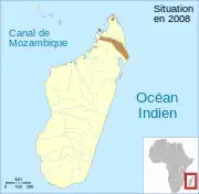 Cette espèce est endémique de Madagascar. Elle se rencontre du niveau de la mer jusqu'à 900 m d'altitude dans le nord de l'île ainsi que sur l'île de Nosy Be[1],[2].