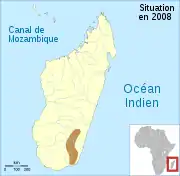 Cette espèce est endémique de Madagascar. Elle se rencontre entre 600 et 1 000 m d'altitude du massif d'Andringitra jusqu'au parc national d'Andohahela[1],[2]. Elle vit dans la forêt tropicale humide primaire. On le la trouve pas dans les habitats dégradés[2].