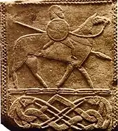 Plaque de chancel faisant partie d'une frise représentant un cavalier germain. Halle, musée régional de la Préhistoire.