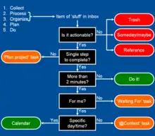 La méthode repose notamment sur 5 étapes : Saisir, Clarifier, Organiser, Planifier, Agir.