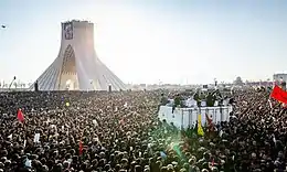 L'Iran est également touché en novembre 2019 par un mouvement de protestation anti-gouvernemental[34]. Des portraits de Qassem Soleimani et du Guide de la Révolution Ali Khamenei sont brûlés[34]. Les autorités coupent internet et les Gardiens de la révolution islamique mènent une violente répression qui fait entre 300 et 1 500 morts[35],[36],[37],[34].