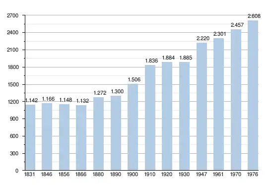 • Sources : INS, Rem. : 1831 jusqu'en 1970 = recensements, 1976 = nombre d'habitants au 31 décembre[2].