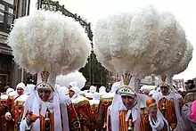 - La collerette est portée aux épaules. Elle est confectionnée à partir d'environ 150 mètres de ruban plissé blanc, est bordée de dentelle ou de franges dorées et est agrémentée d'une cocarde blanche.