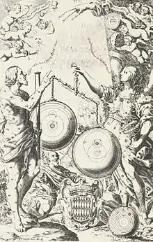 En 1651, Riccioli publie un ouvrage Almagestum novum, où il remet en question le système héliocentrique de Copernic. Il attaque ce système par tous les arguments qu’il peut imaginer : mais, à la manière dont il en parle, on croirait, dit Delambre, entendre un avocat chargé d’office d’une mauvaise cause, et qui fait tous ses efforts pour la perdre[1]. Le jésuite convient qu’envisagé comme une hypothèse, le système de Copernic est le plus beau, le plus simple et le mieux imaginé. Néanmoins, dès qu’il ne l'adoptet pas, il fallait bien y en substituer un autre : celui de Ptolémée n’était plus soutenable ; ceux de Tycho et de Rheita avaient leurs difficultés : il proposa de faire tourner la Lune, le Soleil, Jupiter et Saturne, immédiatement autour de la Terre ; Mercure, Vénus et Mars ne devaient être que des satellites du Soleil. Il ne tenait d’ailleurs pas beaucoup à cet arrangement : pour expliquer les irrégularités du mouvement de la Lune, après avoir montré les inconvénients de tous les systèmes précédents, il propose le sien, non comme vrai, mais comme très simple[2]. Riccioli fut aidé dans ses observations par le P. Francesco Maria Grimaldi, son disciple et son ami le plus cher. Sentant combien était défectueuse l’astronomie que nous avaient laissé les anciens, il conçut le hardi projet d’établir, sur de nouvelles bases, cette science et celles qui en dépendent, et il jeta, dans son Almagestum novum, les fondements de cet immense travail. Il comprit qu’une pareille réforme devait commencer par la mesure de la Terre, dont le premier élément était une métrologie comparée, afin d’analyser, sur une échelle commune, les diverses tentatives faites jusqu’alors. Profitant de la facilité que lui donnaient les collèges de son ordre, répandus dans tous les états catholiques et dans les missions, il se fit envoyer en nature la longueur du pied, ou de la mesure élémentaire de chaque pays, et il en composa[3] la première métrologie réelle qu’on eût encore vue, tout ce qu’on avait publié jusqu’alors, en ce genre, n’étant fondé que sur des rapports vagues ou compilés sans critique. Mais Riccioli eut la mal-adresse de prendre pour type l’ancien pied romain, mesure dont la longueur précise peut toujours souffrir quelque discussion : aussi son travail métrologique est demeuré oublié. Ce jésuite n’a pas été plus heureux dans sa mesure de la Terre. La critique qu’il fait de la mesure exécutée par Snellius, n’a rien d’exagéré[4]: mais sa propre mesure, dont il s’occupa de 1644 à 1656, entreprise par un procédé absolument différent, et qui ne pouvait offrir alors d’exactitude, vu les irrégularités des illusions de la réfraction horizontale, si peu connues même aujourd’hui, lui donna un résultat encore plus défectueux que celui de Snellius[5]. Il fut plus heureux dans ses travaux sur la Lune, qu’il observa longtemps avec une excellente lunette de quinze pieds : il porta jusqu’à six cents le nombre des taches qu’il y découvrit, et dont il publia la description : Langren n’en avait compté que deux cent soixante-dix, et Hevelius cinq cents cinquante. La nomenclature de Riccioli a prévalu sur celle de ce dernier ; et l’on s’en sert encore aujourd’hui. Scheiner et Rheita n’avait donné que des ébauches de la figure de la Lune : celle que donne Riccioli est bien supérieure. Ses remarques sur la libration, si imparfaitement connue par Hevelius, composeraient à elles seules, un volume[6]. On doit lui rendre la justice qu’il avait multiplié ses expériences sur les oscillations du pendule, avant d’avoir lu le livre de Galilée. Il entrevit même l’anneau de Saturne, en faisant observer que les deux appendices dont le disque de cette planète était accompagné, formaient une espèce d'ellipse : il ne restait qu’un mot à dire pour définir l’anneau de Saturne ; mais ce mot fut dit par Huygens[7]. Le plus grand tort du P. Riccioli fut d’avoir méconnu l’importance des découvertes de Kepler : il était prévenu contre lui, à cause que cet astronome allemand doutait de l'éclipse miraculeuse arrivée à la mort de Jésus-Christ. Malgré ses erreurs, on ne peut nier que Riccioli n’ait rendu d’immenses services, tant à l’astronomie qu’à la géographie et à la chronologie. Il prit la défense de la réforme grégorienne, dont l’exactitude était contestée par Francesco Levera, et il publia, sous le nom de Michel Manfredi : Vindiciæ kalendarii Gregoriani, Bologne, 1661, in-fol., ouvrage qui reçut l’approbation de Cassini.