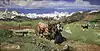 Chez Segantini, les êtres humains ont été intégrés dans le paysage dès le début et ont fusionné avec lui. Millet avait poétisé le paysan, l'avait exalté en termes romantiques et littéraires ; pour Segantini, les bergers et les paysans restent simples et sans aucun pathos. Avec Gustave Courbet, Millet découvre le paysan comme thème artistique, et le choix de ce thème est l'expression d'un programme socio-éthique. Millet voit le paysan en intellectuel, en citadin, de l'extérieur et comme une critique de la vie citadine. Malgré la similitude extérieure des motifs des deux artistes, ceux de Segantini ont une essence très différente. Il voulait simplement peindre ses modèles « [...], très différemment de Millet, heureux, beaux et contents, ne suscitant pas la pitié, certainement plus envieux quand on apprend à les connaître, de leur vie, comme je l’ai fait. »[40]