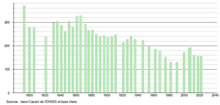 - Fiches Insee - Populations légales de la commune pour les années 2006, 2007, 2008, 2009, 2010, 2011, 2012, 2013, 2014, 2015, 2016, 2017, 2018, 2019, 2020 et 2021.