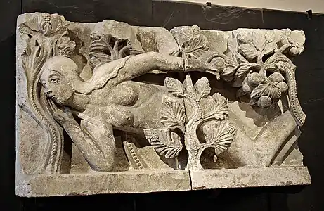 En revanche, La Tentation d'Ève, linteau qui figurait sur un portail latéral, lui est bien attribué, ainsi que les quatre chapiteaux encore en place sur le même portail[11].