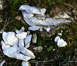 | Cassure | conchoïdale (fragile), forme de glace compacte éclatant en petit fragments |