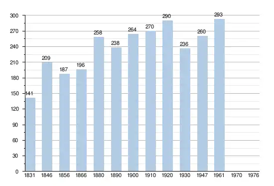 - Sources : INS, Rem. : 1831 jusqu'en 1970 = recensements, 1976 = nombre d'habitants au 31 décembre.