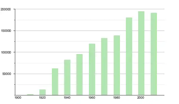| 1930 | 62 736 | ▲ +363,48 % | |