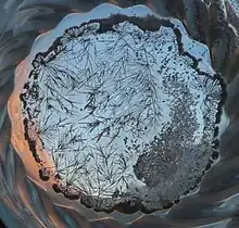 Cristallisation de glucuronamide/acide ascorbique/caféine après dissolution dans un verre d'eau puis évaporation.