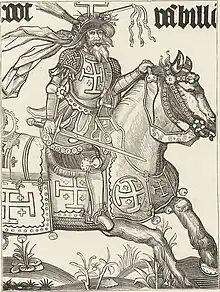 Il est, dès le Moyen Âge, considéré comme un héros, faisant partie des Neuf Preux.