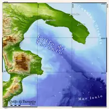 Le golfe de Tarente est un golfe de la mer Ionienne, situé dans le sud-est de l'Italie, dans la cambrure de la botte italienne. Il est grossièrement de forme carrée, un carré dont le côté sud-est est ouvert sur la mer Ionienne.