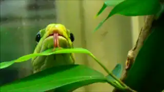 Gonyosoma prasinum est un serpent vert diurne et arboricole qui atteint à l’âge adulte à une taille maximale de 1,20 m.