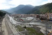 C'est à la station qu'est construit le village Gorny Kourort, pour les journalistes accrédités aux jeux olympiques (avec 2 658 chambres) et pour les services médicaux. Il se trouve sur deux niveaux à 540 mètres d'altitude (1 780 chambres) et à 960 mètres d'altitude (878 chambres).