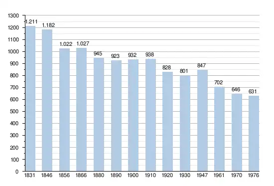 - Sources : INS, Rem. : 1831 jusqu'en 1970 = recensements, 1976 = nombre d'habitants au 31 décembre[2].