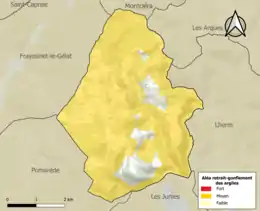 Le retrait-gonflement des sols argileux est susceptible d'engendrer des dommages importants aux bâtiments en cas d’alternance de périodes de sécheresse et de pluie. 89,1 % de la superficie communale est en aléa moyen ou fort (67,7 % au niveau départemental et 48,5 % au niveau national). Sur les 163 bâtiments dénombrés sur la commune en 2019, 149 sont en aléa moyen ou fort, soit 91 %, à comparer aux 72 % au niveau départemental et 54 % au niveau national. Une cartographie de l'exposition du territoire national au retrait gonflement des sols argileux est disponible sur le site du BRGM[20],[Carte 2].