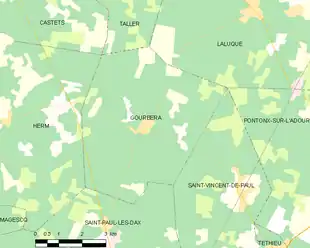 Par ailleurs la commune fait partie de l'aire d'attraction de Dax, dont elle est une commune de la couronne[Note 2]. Cette aire, qui regroupe soixante communes, est catégorisée dans les aires de 50 000 à moins de 200 000 habitants[13],[14].