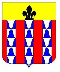 "de gueules, à trois pals de vair au chef d'argent chargé d'une fleur de lys au pied nourri, de sable". L'illustration jointe présente un chef d'or et non d'argent...
