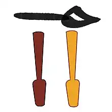Il représente un aviron de gouverne. Ocre rouge il peut aussi être jaune. Il est originellement vertical (P8) mais devient horizontal